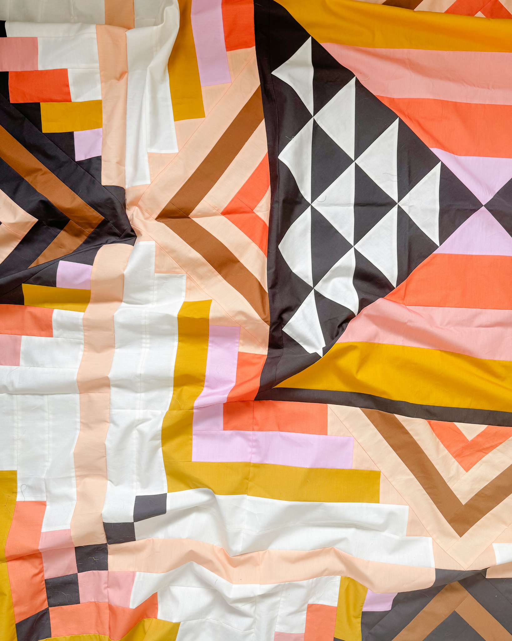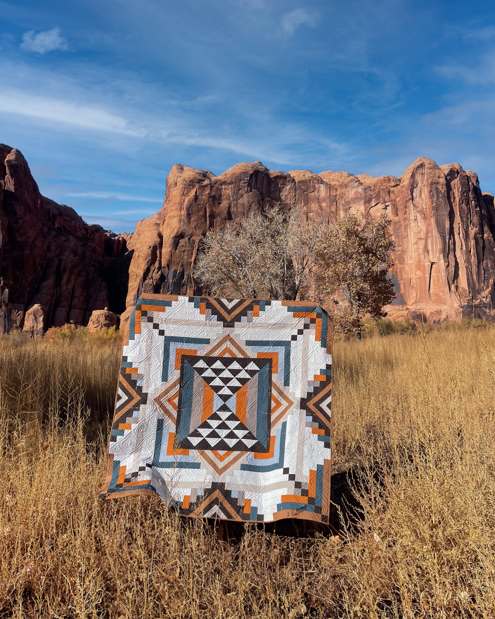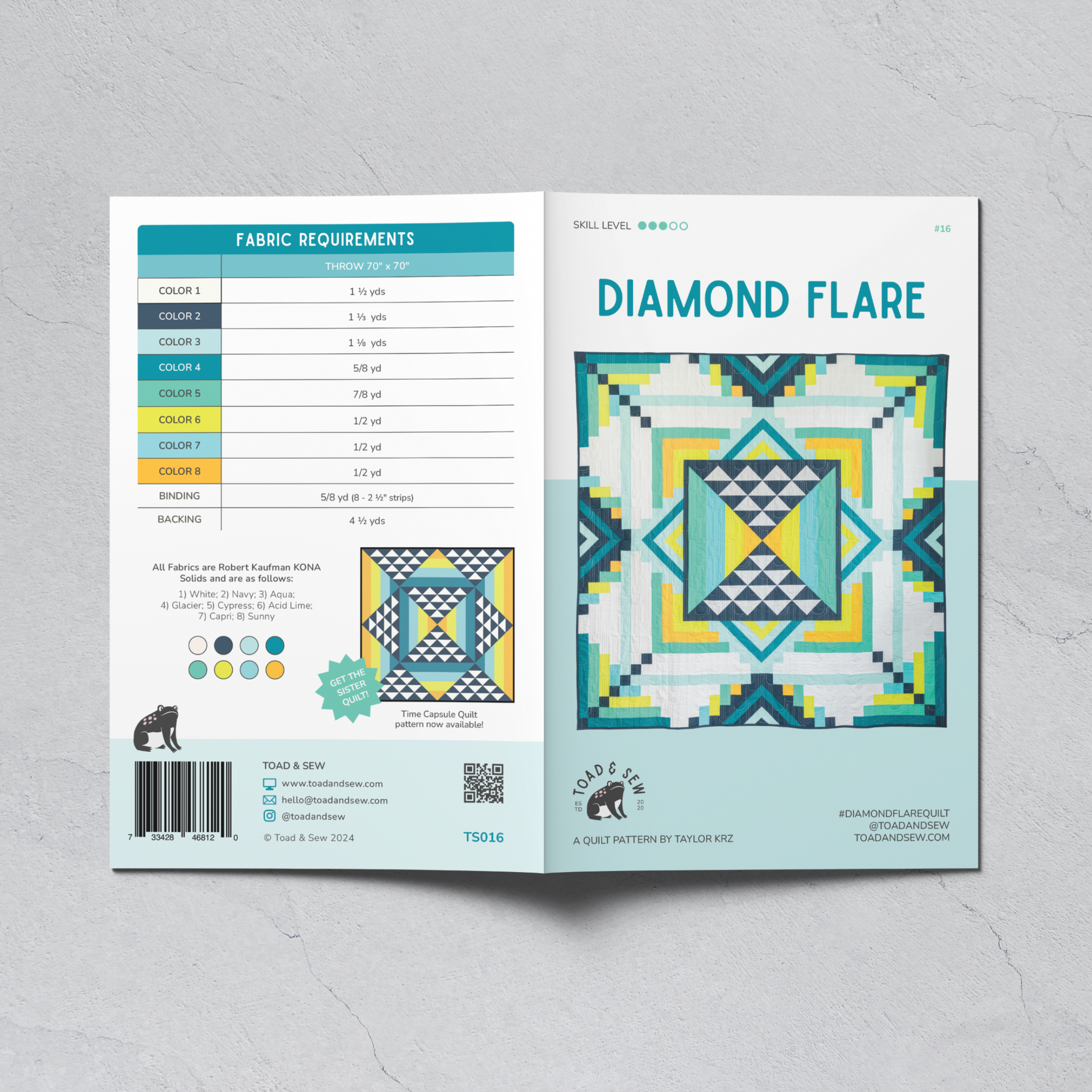 The Diamond Flare Quilt was originally designed to be the 2023 Block of the Month (BOM) for the Seattle Modern Quilt Guild (SMQG). Inspired by the Pacific Northwest's stunning landscapes, vibrant flora, and rich culture, this medallion-style quilt offers a unique twist on traditional BOM patterns. Combining block-based and medallion designs creates a satisfying visual journey as the quilt comes together.