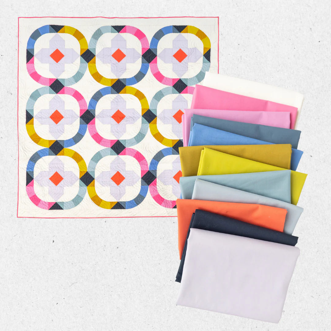 This listing is for a Moonbeam Quilt Kit. Kit includes fabric to make one throw size quilt, finishing at 78" x 78." Kit does NOT include the pattern - pattern is sold separately. You can purchase the pattern here.