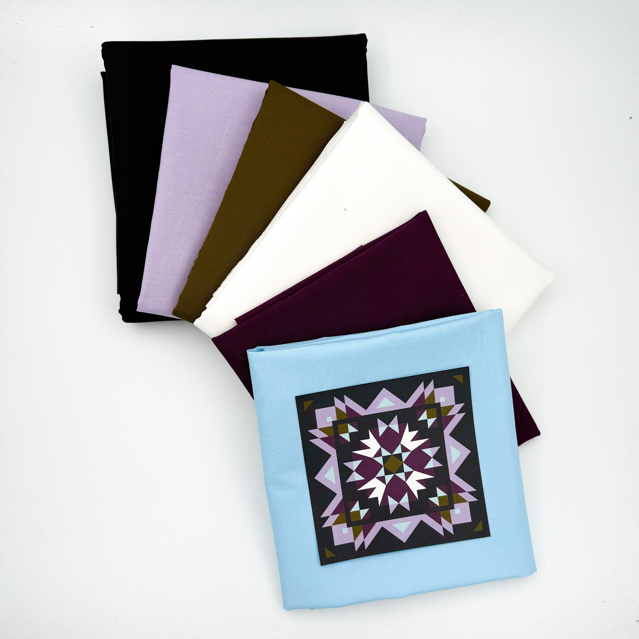 The WWC Tawnee’s Aria Quilt Kit features Wyldwood Creative’s signature Bella Solids palette. Moody purples, soft blues, and bold charcoals come together for a modern, dramatic take on the Aria medallion quilt.