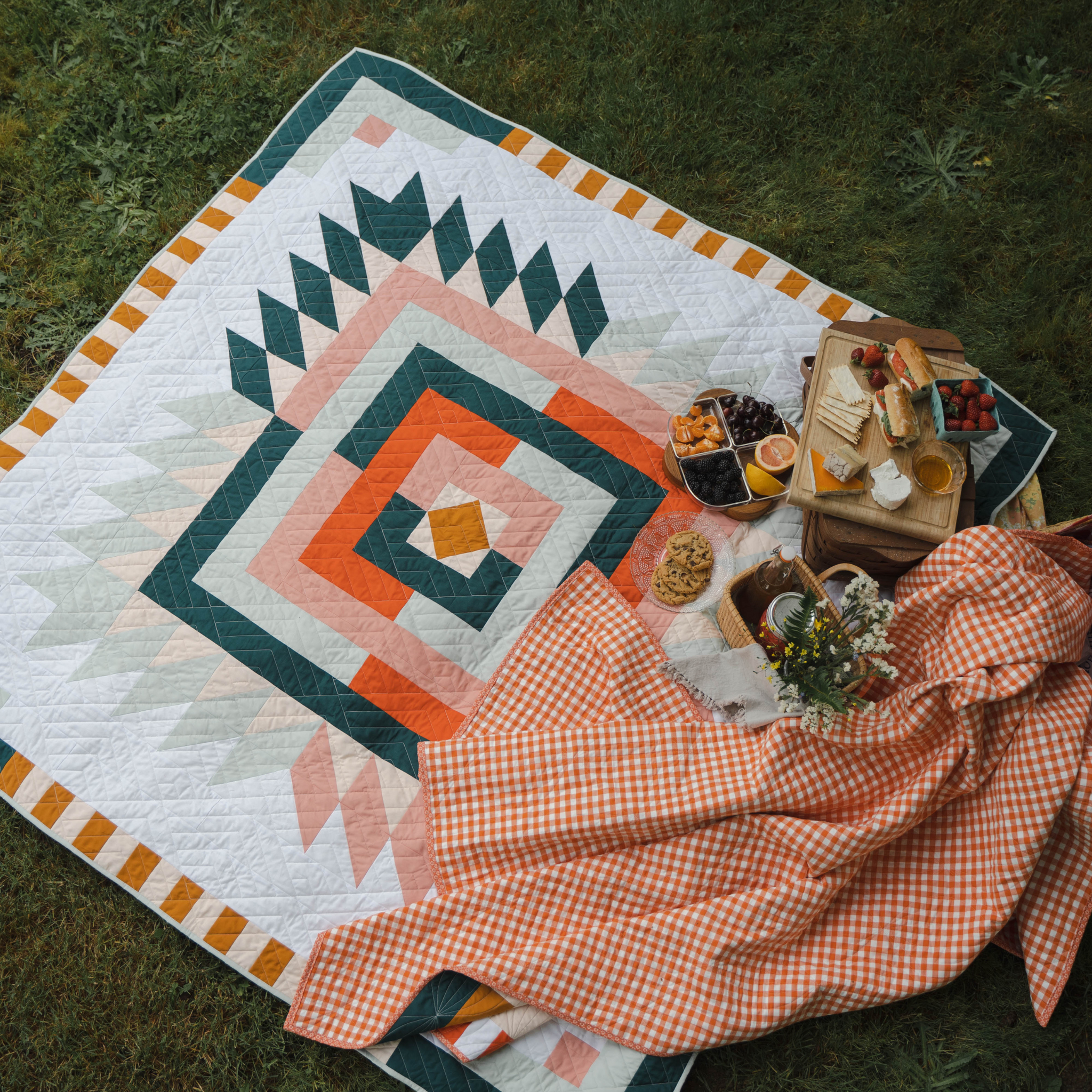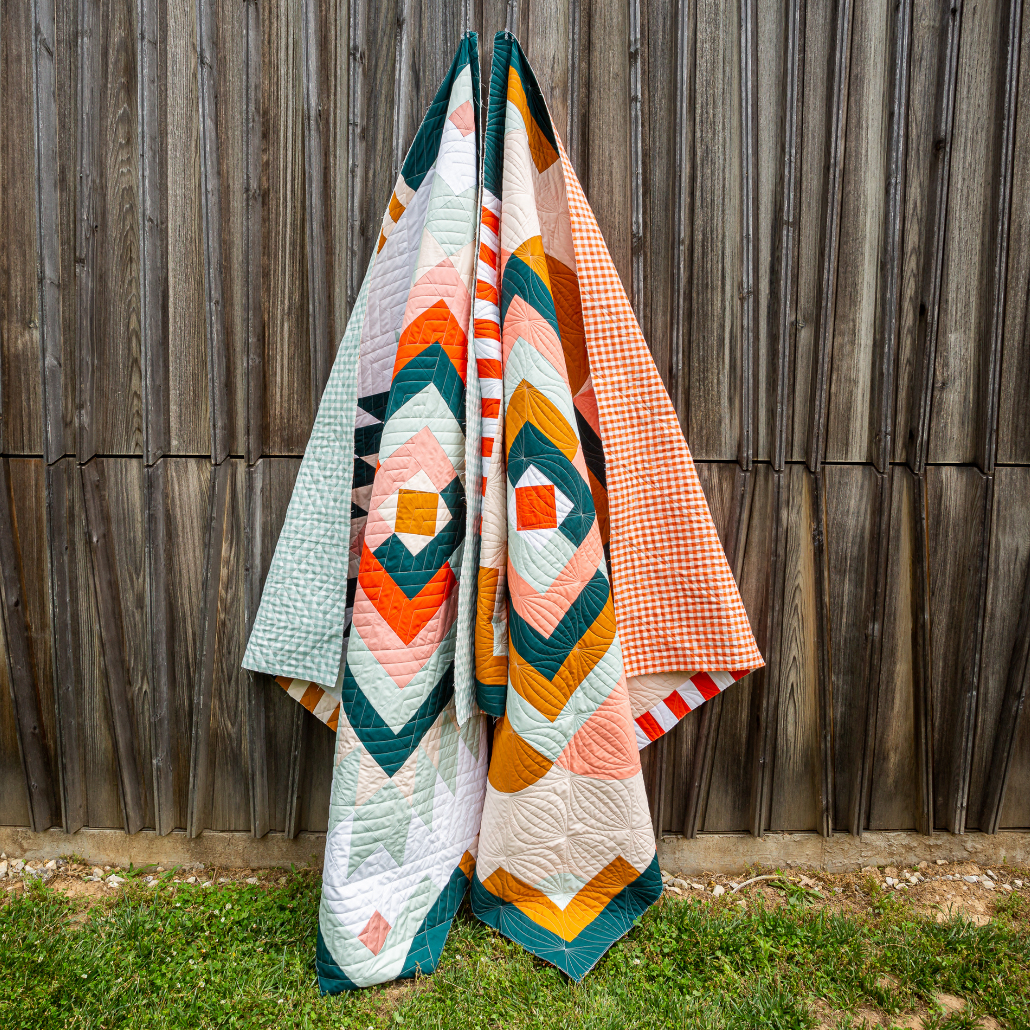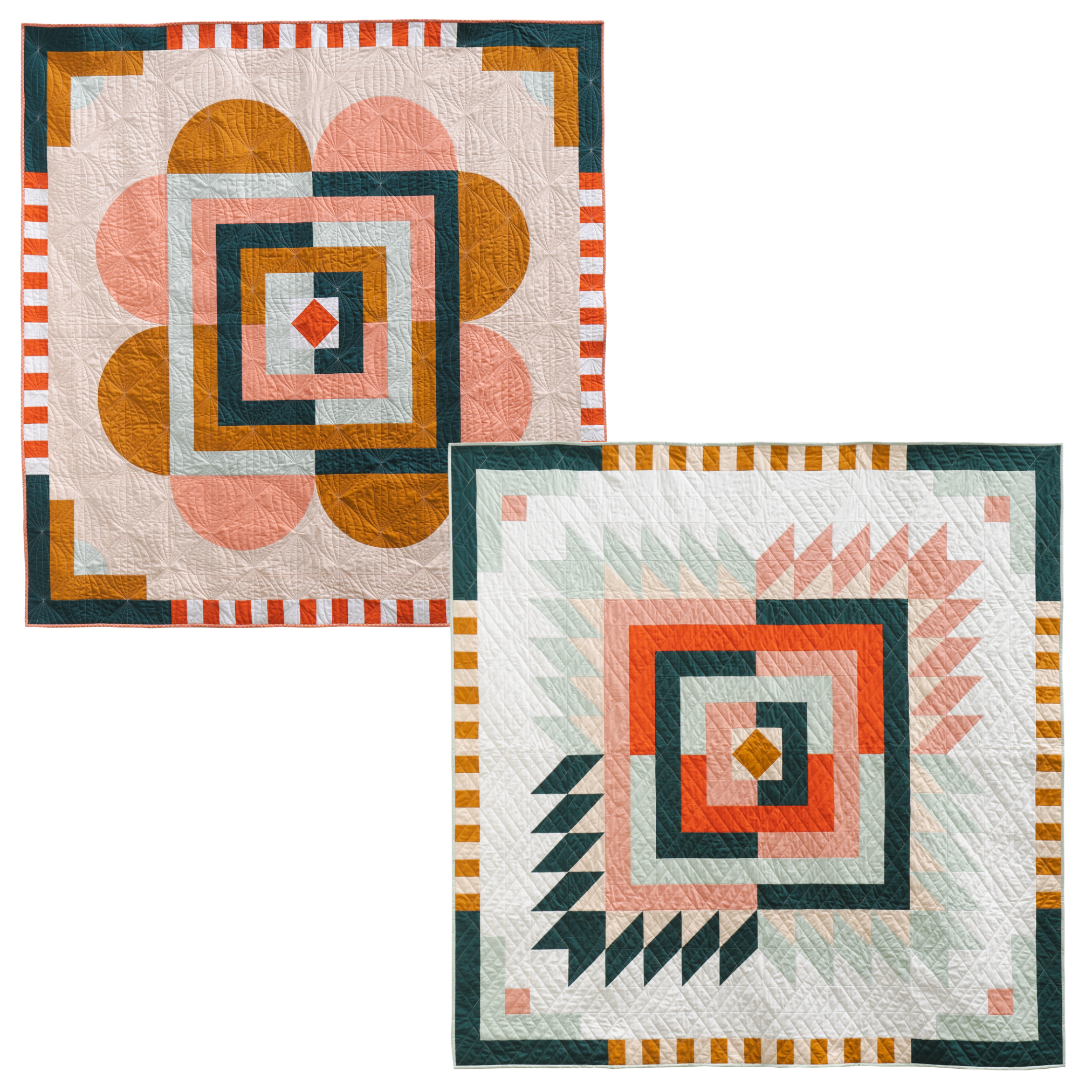 The Sister Quilts Bundle brings together two modern medallion-style quilt patterns, Floyd Quilt and Grove Quilt designed by Taylor Krz of Toad & Sew.